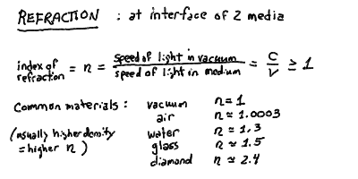 water (n = 1.3), glass (n = 1.5), and diamond