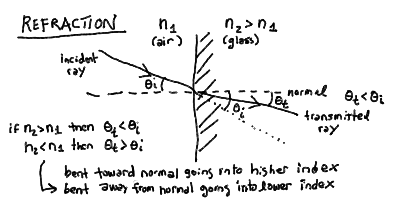 - Thus, a ray is bent toward the normal when it passes from air into