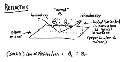 reflection: the angle that an incident light ray makes to the