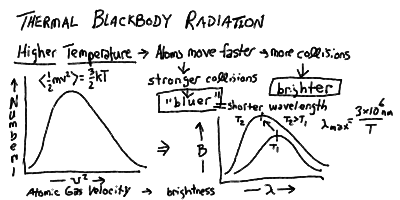 hotter something is, the brighter it glows, and the "bluer" a color the light