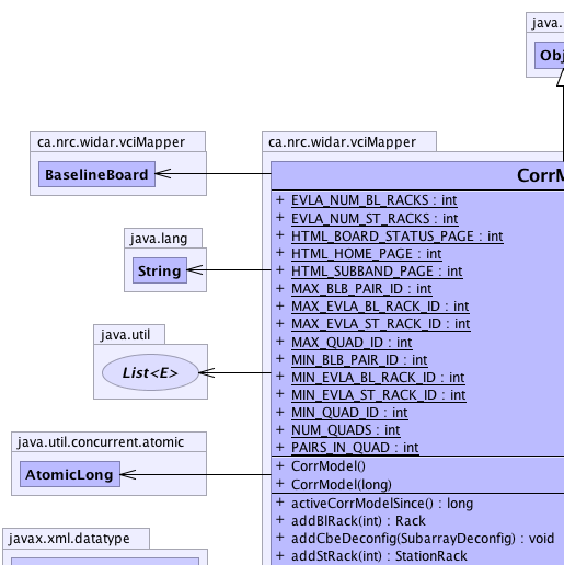 Software model of the WIDAR correlator. An instance of the class CorrModel implements all the configurable parameters and components of the WIDAR correlator; as well as the status parameters that may infulence the mapping of the VCI request into hardware configuration.