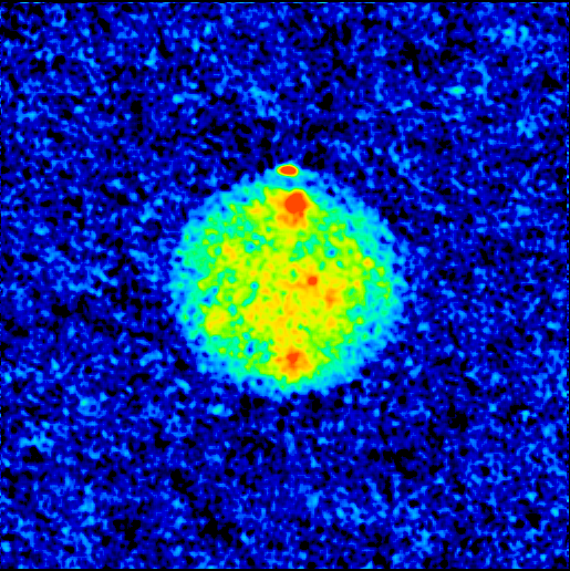 In this Goldstone-VLA radar image made in 1991, red areas are areas of high radar reflectivity, which can be a result of either the surface and near-surface composition or of surface roughness. The area of highest radar reflectivity is at the planet's north pole (top of image). This is believed to be due to significant amounts of water ice residing in permanently-shaded areas within craters in the polar region. The other two large regions of high reflectivity are in areas that never have been imaged by spacecraft, so the cause of the high reflectivity remains a mystery.