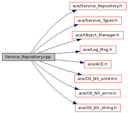 #include "ace/Service_Repository.h"#include "ace/Service_Types.h"#include "ace/Object_Manager.h"#include "ace/Log_Msg.h"#include "ace/ACE.h"#include "ace/OS_NS_unistd.h"#include "ace/OS_NS_errno.h"#include "ace/OS_NS_string.h"Include dependency graph for Service_Repository.cpp: