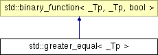 | bool std::greater_equal< _Tp >::operator() | ( | const _Tp & | __x, | |