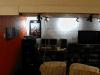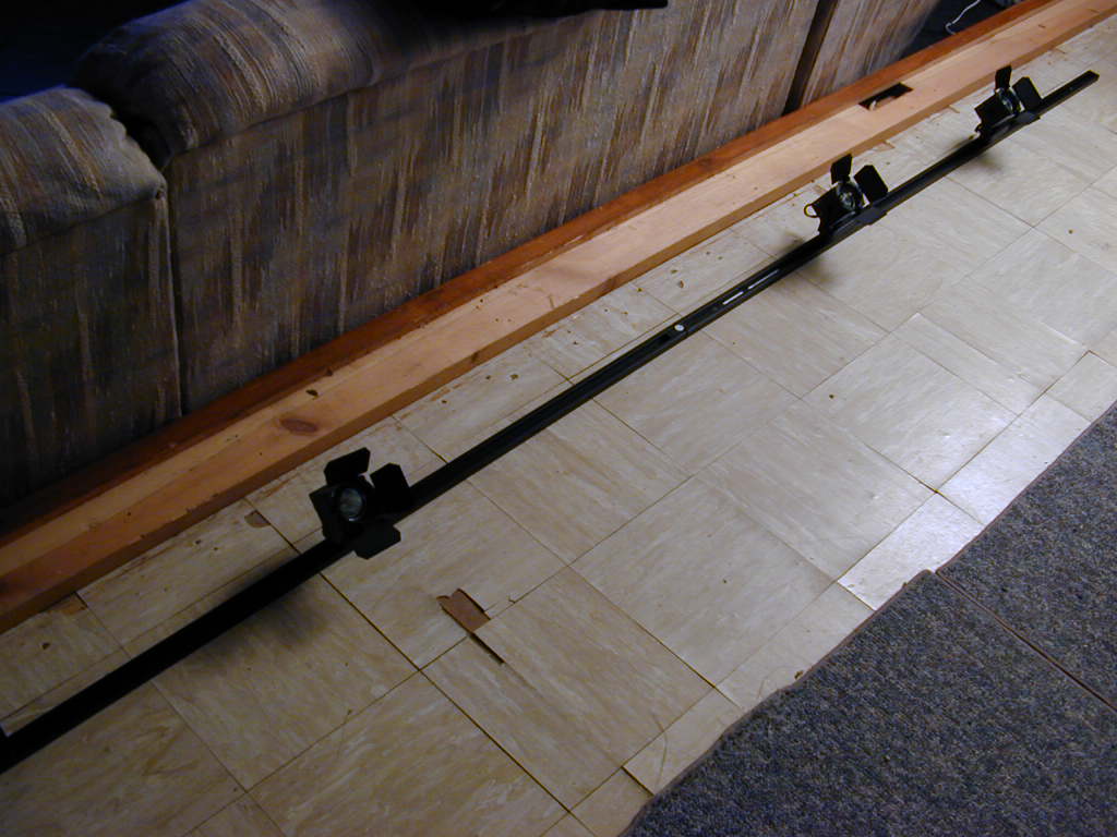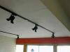Since the floor was a dark grey or almost black, I decided it would represent the stage of a theater. To continue this idea, I purchased track lights that resembed fresnel lights, complete with barn doors.