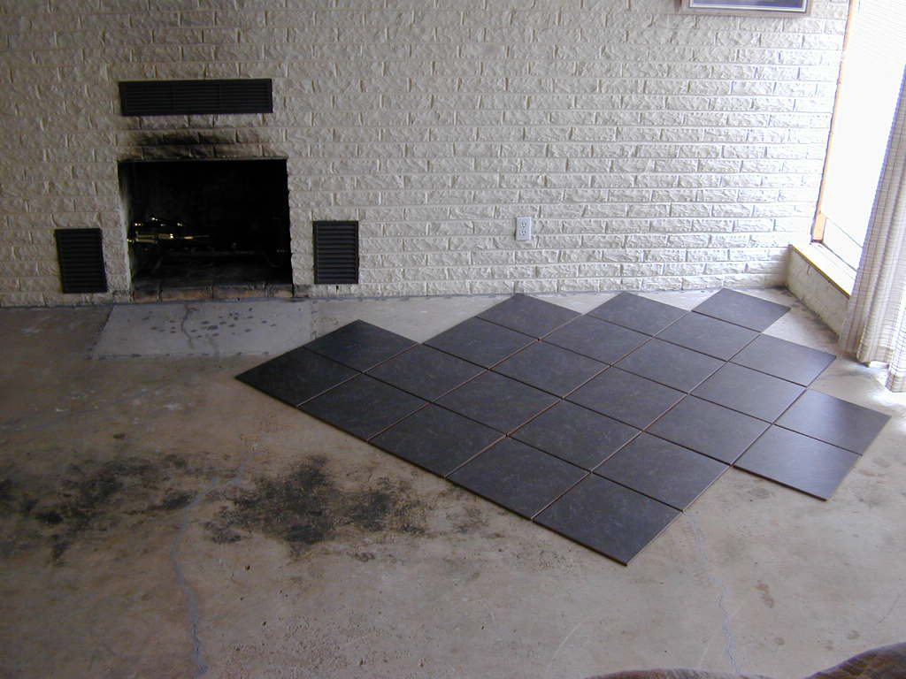 My den, which is a converted garage, still had a garage floor. My goal was to remodel the entire room with heated tile, track lighting and new paint.