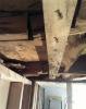 Since there is no support beam why not finish the thing off in drywall? If for no other reason then I tend to hit my hed on it. So, one day I pulled off one of the planks that made up the "box". The house didn't collapse so I got the sledge hammer. A good and proper mess was created soon there after.