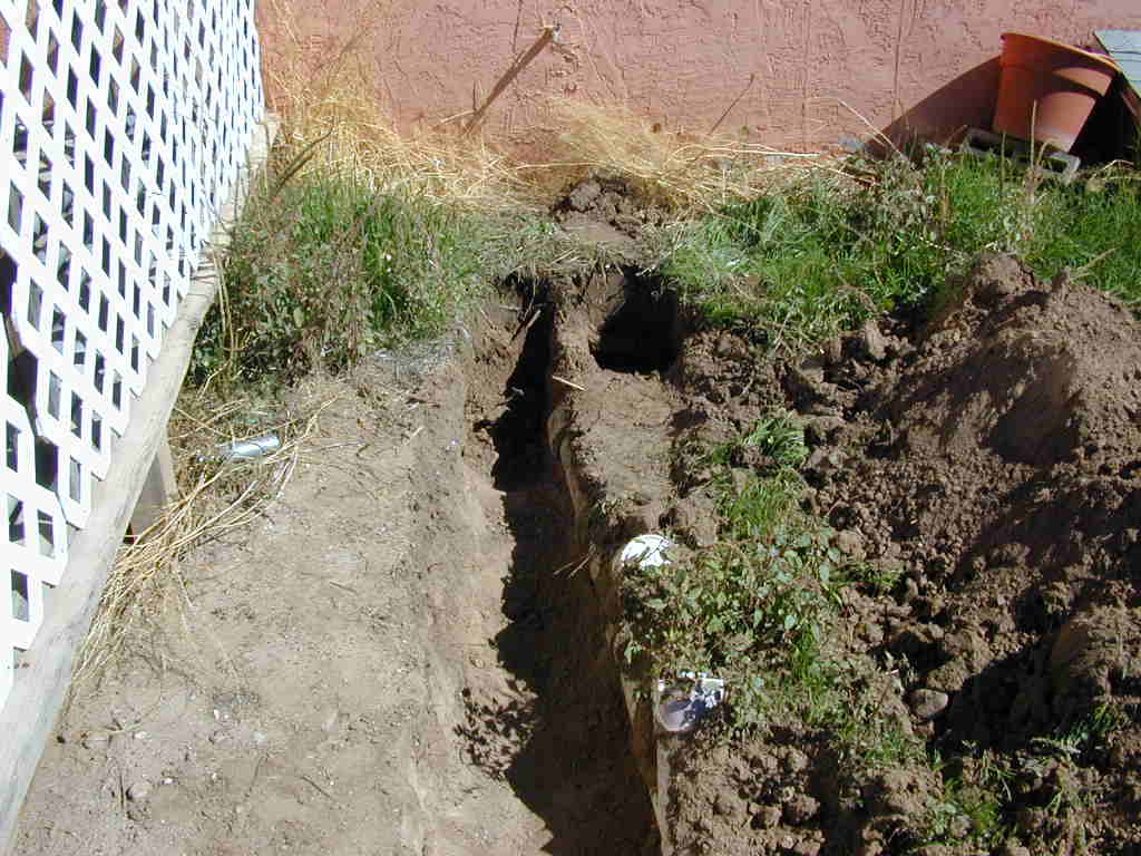 After Qwest trenched my phone line they came out with a trencher to dig a new line to my house. According to them it had been cut too many times to be patched again, so I convinced the trenching guy to dig the trench 32 inches so I could bury my overhead power line as well. However, since there is a serious lack of competent electricians in Socorro the project is still in progress.
