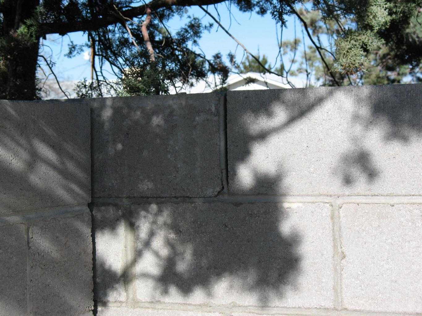 August 2008: After less than two years, the wall that the looser built was collapsing. I could shake it with one hand and see through a big crack. I found a much better contractor and had him send his wall guy to fix it. He also added cap blocks which the boob never did.