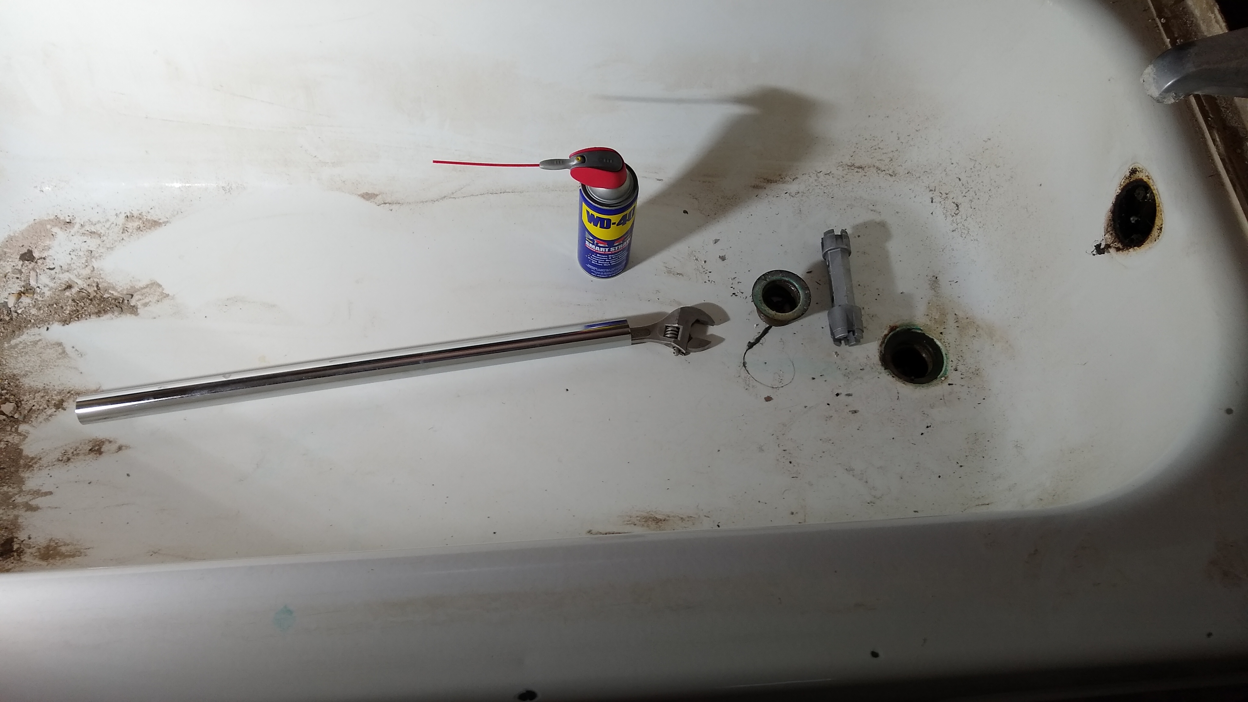 Behind tub drain |
