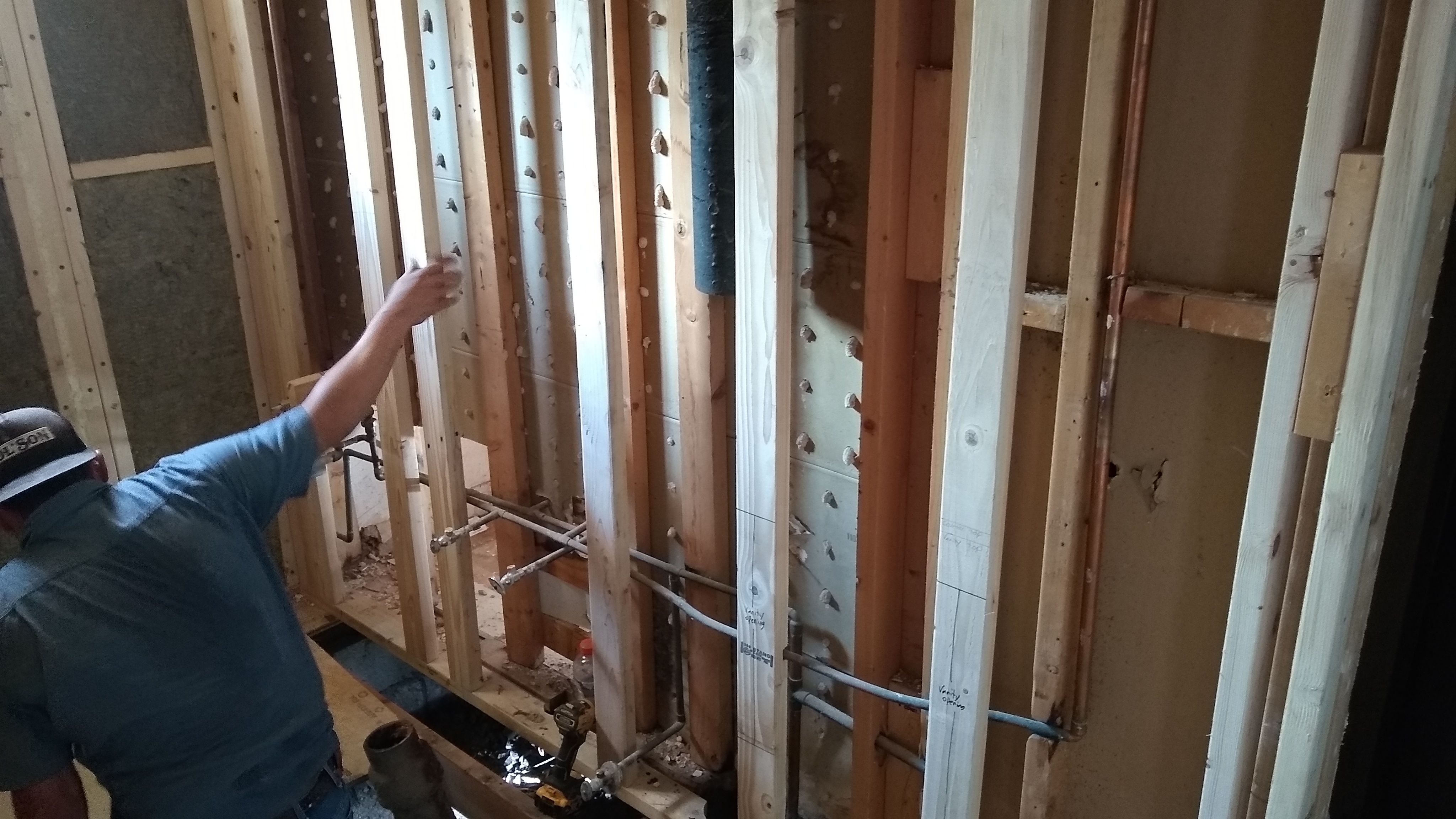 studs in wet wall |