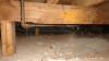 There is a serious crack in one of the subjoists under the NW corner of the room. Since there is a noticable uneveness to the floor in the living room next to the bedroom, I left the crack as is and will deal with it when I get to remodelling the living room. Because if I repair it now I may need to undo that repair in order to fix the uneveness in the living room.