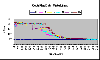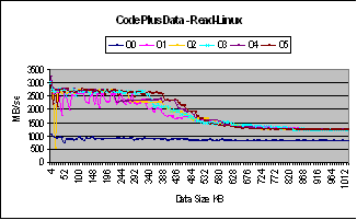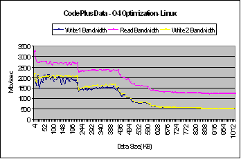 34 : Graphs for Code plus data with different levels of optimization on Linux