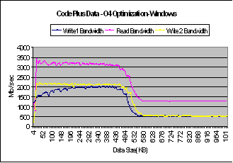 Figure 35 : Graphs for Code plus data with different levels of optimization on Windows