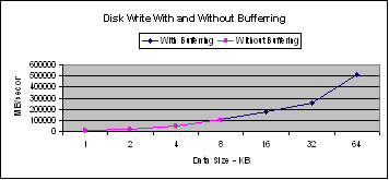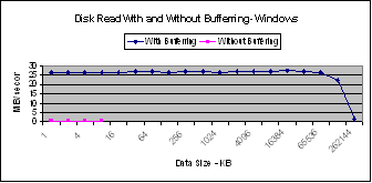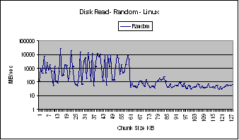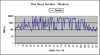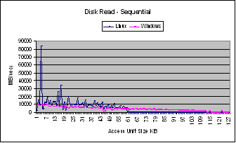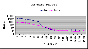 sizes. For chunk sizes less than 64 KB, Linux performs better than Windows and