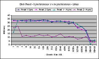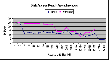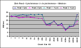 The performance of synchronous and asynchronous reads are different for Linux and Windows.