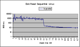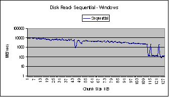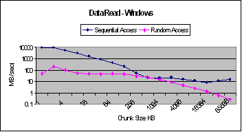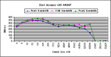 for chunk sizes less than 64 KB. Beyond this size the sequential access bandwidths