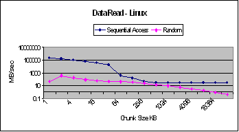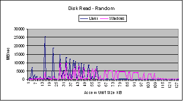 16 : Graphs for Sequential and Random Disk Access on Linux and Windows