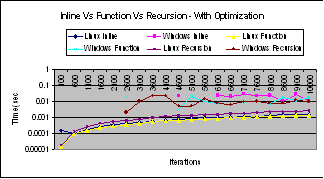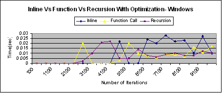 29 : Graph for Inline Vs Function Vs Recursion on Windows