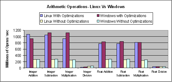 exception of integer division. Windows and Linux gave comparable numbers for
