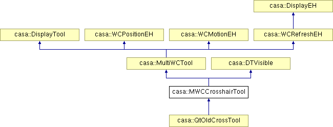 This class adds to its base MWCTool to provide a tool for placing and moving a crosshair on a WorldCanvas. While MWCCrosshairTool is not abstract, it performs no useful function. The programmer should derive from this class, and override the crosshairReady function, which is called when the mouse button is pressed, moved, or released within a WC draw area where events are handled. The get() function then retrieves the crosshair position in screen pixels.